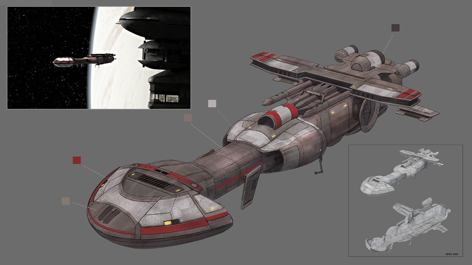 W "Powrocie Jedi" przez ułamek sekundy możemy dostrzec dorneańską kanonierkę. Gdy twórcy wprowadzili ją w finale trzeciego sezonu do "Rebeliantów",gotowy dzięki temu model użyła ekipa "Łotra 1" i wykorzystała na potrzeby kinowej produkcji.